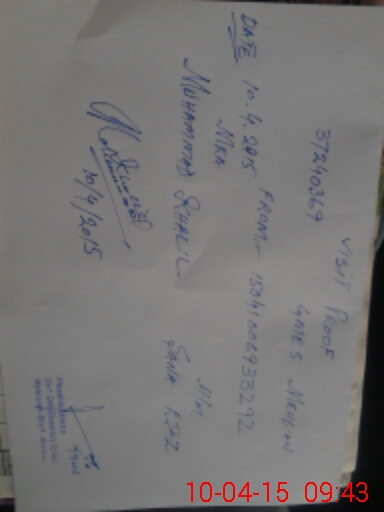 | Monitoring Date: 10-04-2015 | Start Time: 10-04-2015 09:16 AM | End Time: 10-04-2015 09:47 AM | Name of MEA: Zv**** | |