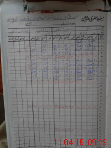 | CNIC | Full Name | Designation | R/C | Absence During Last Calender Month |