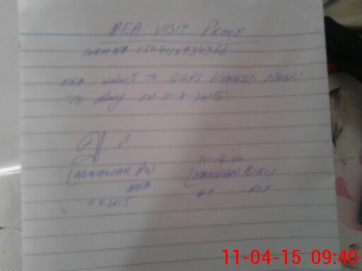 | Monitoring Date: 11-04-2015 | Start Time: 11-04-2015 09:05 AM | End Time: 11-04-2015 09:41 AM | Name of MEA: Mu**** Al**** ex**** | |