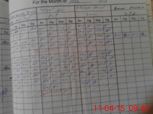 | CNIC | Full Name | Designation | R/C | Absence During Last Calender Month |