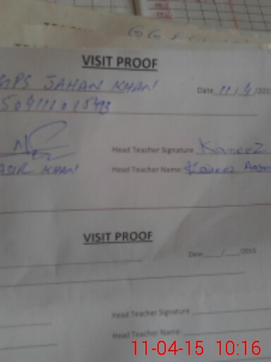 | Attendance Register | Head Teacher | MEA with School | Visit Proof |