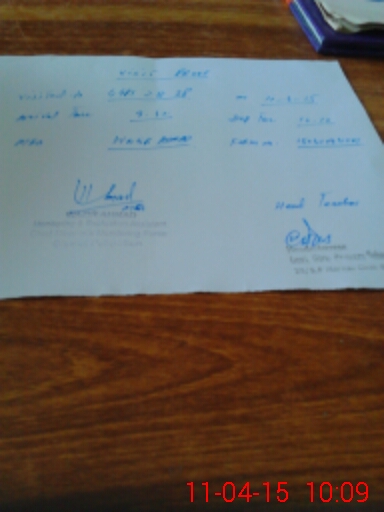 | Monitoring Date: 11-04-2015 | Start Time: 11-04-2015 09:41 AM | End Time: 11-04-2015 10:09 AM | Name of MEA: Wa**** Ah**** (R**** | |