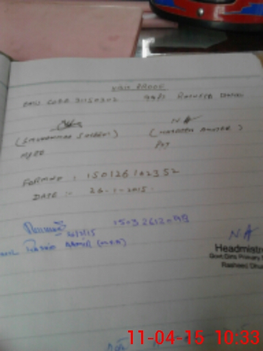| Monitoring Date: 11-04-2015 | Start Time: 11-04-2015 10:17 AM | End Time: 11-04-2015 10:34 AM | Name of MEA: Sh**** Mu**** | |
