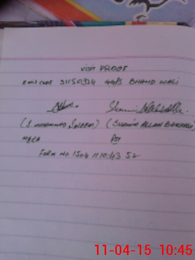 | Monitoring Date: 11-04-2015 | Start Time: 11-04-2015 10:31 AM | End Time: 11-04-2015 10:48 AM | Name of MEA: Mu**** Sa**** BN**** 33 | |