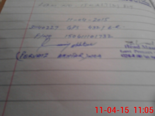 | Monitoring Date: 11-04-2015 | Start Time: 11-04-2015 10:17 AM | End Time: 11-04-2015 11:10 AM | Name of MEA: Pe**** Ak**** BN**** 12 | |