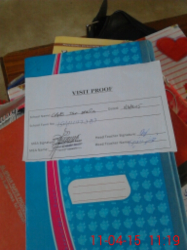| Attendance Register | Head Teacher | MEA with School | Visit Proof |