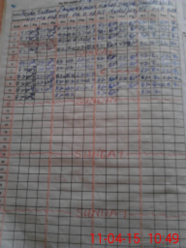 | Monitoring Date: 11-04-2015 | Start Time: 11-04-2015 10:25 AM | End Time: 11-04-2015 11:10 AM | Name of MEA: Mu**** Ja**** An**** | |