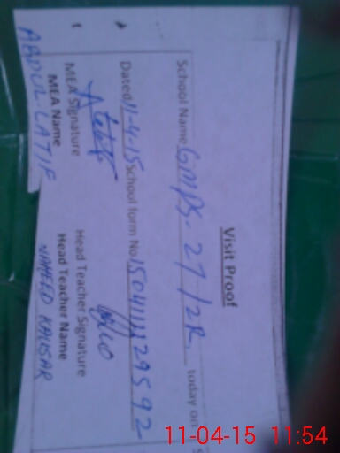 | Attendance Register | Head Teacher | MEA with School | Visit Proof |