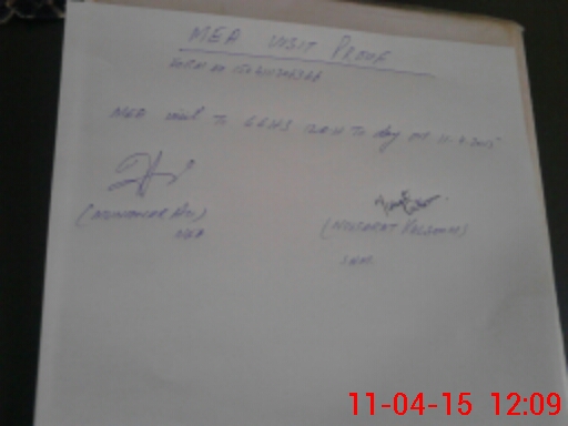 | Monitoring Date: 11-04-2015 | Start Time: 11-04-2015 10:53 AM | End Time: 11-04-2015 12:09 PM | Name of MEA: Mu**** Al**** ex**** | |