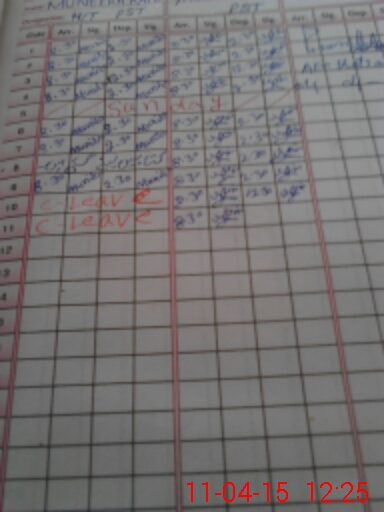 | CNIC | Full Name | Designation | R/C | Absence During Last Calender Month |