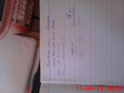 | Monitoring Date: 11-04-2015 | Start Time: 11-04-2015 10:07 AM | End Time: 11-04-2015 10:34 AM | Name of MEA: Za**** Iq**** BN**** | |