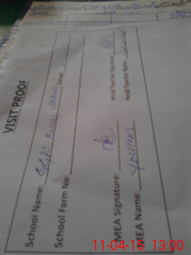 | Attendance Register | Head Teacher | MEA with School | Visit Proof |