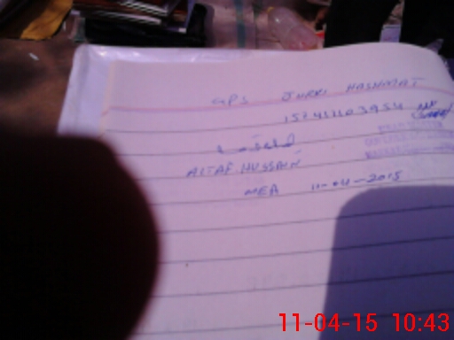 | Monitoring Date: 11-04-2015 | Start Time: 11-04-2015 10:15 AM | End Time: 11-04-2015 10:44 AM | Name of MEA: Al**** Hu**** BN**** | |