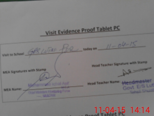 | Attendance Register | Head Teacher | MEA with School | Visit Proof |