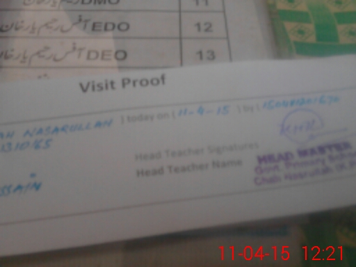 | School Visited by School Health & Nutrition Supervisor (No. of Visits) | 1 | Name1: | Ali Raza | Name2: | Nil |