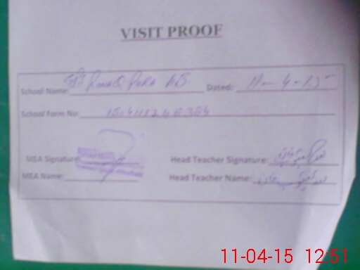 | Attendance Register | Head Teacher | MEA with School | Visit Proof |
