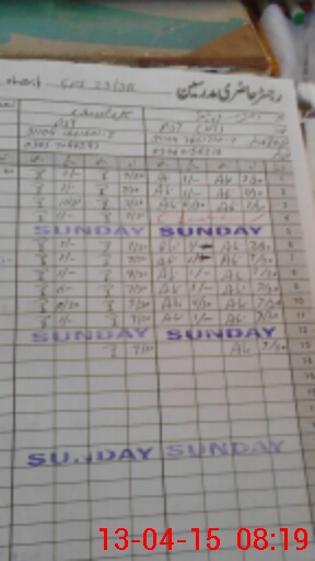 | CNIC | Full Name | Designation | R/C | Absence During Last Calender Month |