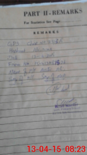 | Monitoring Date: 13-04-2015 | Start Time: 13-04-2015 07:59 AM | End Time: 13-04-2015 08:25 AM | Name of MEA: Ha**** Al**** BN**** 06 | |