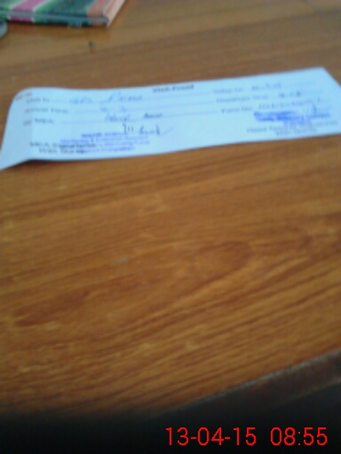 | Monitoring Date: 13-04-2015 | Start Time: 13-04-2015 08:02 AM | End Time: 13-04-2015 08:55 AM | Name of MEA: Wa**** Ah**** (R**** | |