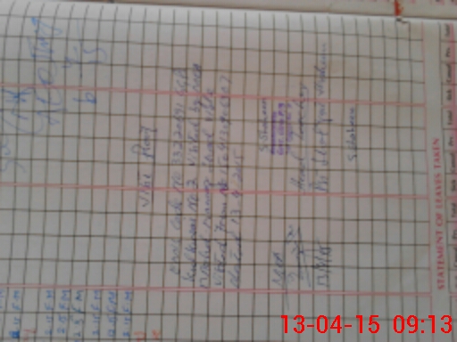 | Monitoring Date: 13-04-2015 | Start Time: 13-04-2015 08:41 AM | End Time: 13-04-2015 09:14 AM | Name of MEA: J-**** MO**** NA**** (R**** | |