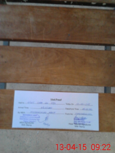 | Monitoring Date: 13-04-2015 | Start Time: 13-04-2015 08:26 AM | End Time: 13-04-2015 09:22 AM | Name of MEA: Mu**** Ha**** (R**** | |