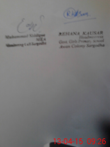 | District: SARGODHA | Tehsil: SARGODHA | Markaz: SARGODHA SADAR - FEMALE | Level: Primary | |