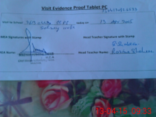 | Attendance Register | Head Teacher | MEA with School | Visit Proof |