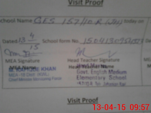 | EMIS Code: 36440328 | Name of School: GES 157/10-R, P/O JUNGLE MARYALA, JAHANIAN | |||