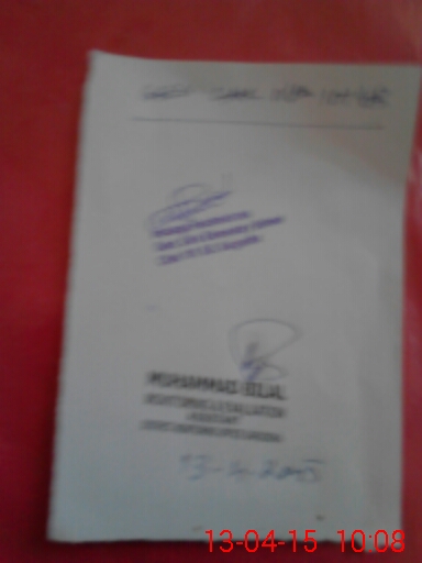 | Monitoring Date: 13-04-2015 | Start Time: 13-04-2015 09:22 AM | End Time: 13-04-2015 10:09 AM | Name of MEA: MU**** BI**** CH**** | |