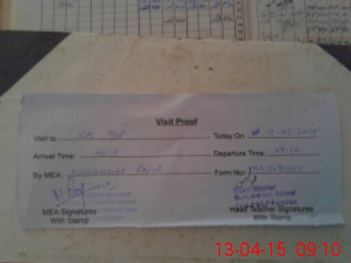 | Attendance Register | Head Teacher | MEA with School | Visit Proof |
