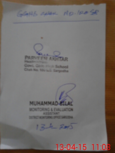 | EMIS Code: 38420063 | Name of School: GGHS CHAK NO.100 SB | |||