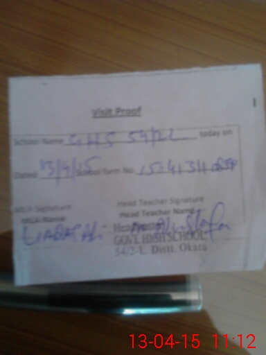 | EMIS Code: 39320096 | Name of School: GHS CHAK NO. 54/2-L | |||