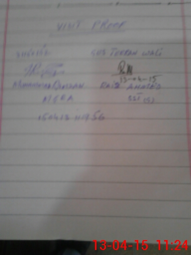 | Monitoring Date: 13-04-2015 | Start Time: 13-04-2015 10:32 AM | End Time: 13-04-2015 11:24 AM | Name of MEA: Mu**** Ra**** BN**** 37 | |