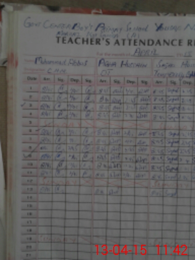 | Attendance Register | Head Teacher | MEA with School | Visit Proof |