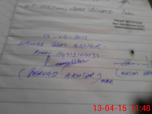 | Monitoring Date: 13-04-2015 | Start Time: 13-04-2015 10:41 AM | End Time: 13-04-2015 11:57 AM | Name of MEA: Pe**** Ak**** BN**** 12 | |