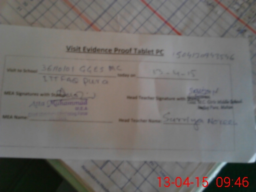 | Attendance Register | Head Teacher | MEA with School | Visit Proof |