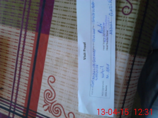 | Monitoring Date: 13-04-2015 | Start Time: 13-04-2015 12:02 PM | End Time: 13-04-2015 12:35 PM | Name of MEA: Kh**** Iq**** | |