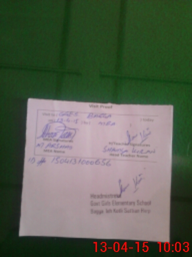 | Attendance Register | Head Teacher | MEA with School | Visit Proof |