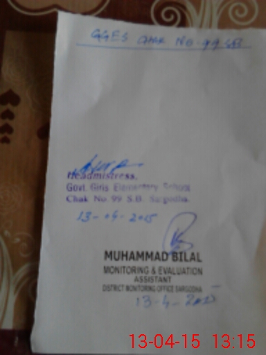 | EMIS Code: 38420157 | Name of School: GGES CHAK NO.99 SB | |||