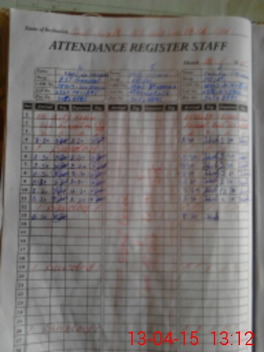 | CNIC | Full Name | Designation | R/C | Absence During Last Calender Month |