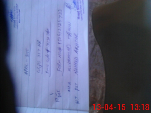 | Remarks (Use Separate Page if Required): ESE SCIENCE MATH AMINA TABASSUM is absent with effect from 09th april 2015 till to date 13th april 2015 continuously without any written proof | |||||