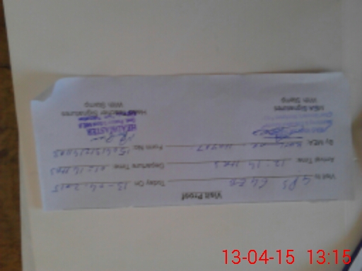 | Monitoring Date: 13-04-2015 | Start Time: 13-04-2015 12:14 PM | End Time: 13-04-2015 01:22 PM | Name of MEA: Kh**** Ha**** (R**** | |