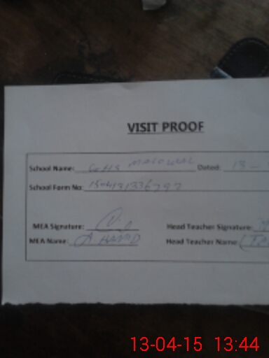 | Attendance Register | Head Teacher | MEA with School | Visit Proof |