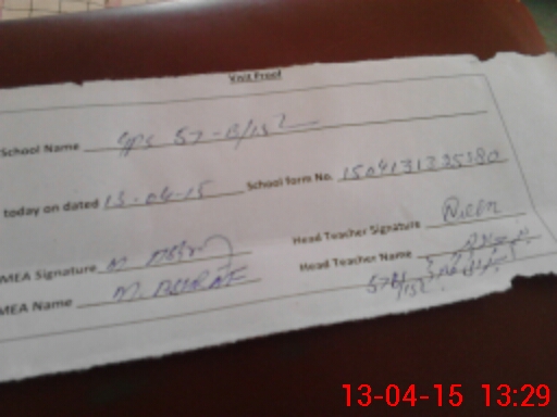 | Attendance Register | Head Teacher | MEA with School | Visit Proof |
