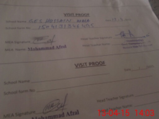 | Attendance Register | Head Teacher | MEA with School | Visit Proof |