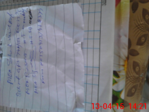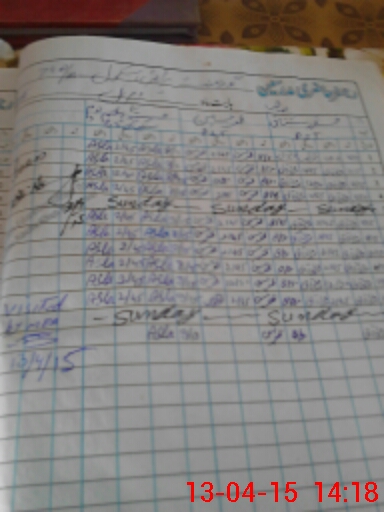 | Monitoring Date: 13-04-2015 | Start Time: 13-04-2015 02:05 PM | End Time: 13-04-2015 02:23 PM | Name of MEA: Z.**** Ba**** Al**** | |