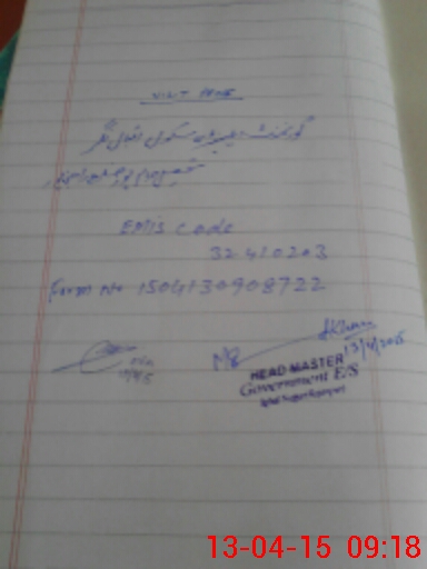 | Name: Na**** Ul**** Designation: (School Headmaster's/Headmistress's) Headmaster Phone/Cell Number: 03**** |