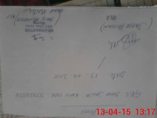 | Monitoring Date: 13-04-2015 | Start Time: 13-04-2015 12:56 PM | End Time: 13-04-2015 01:19 PM | Name of MEA: Rt**** Ja**** Hu**** | |