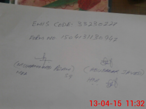 | Name: Ra**** Al**** Designation: (School Headmaster's/Headmistress's) EST Phone/Cell Number: 03**** |