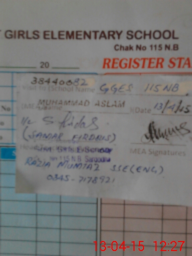 | EMIS Code: 38440082 | Name of School: GGES CHAK NO.115 NB | |||